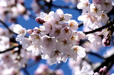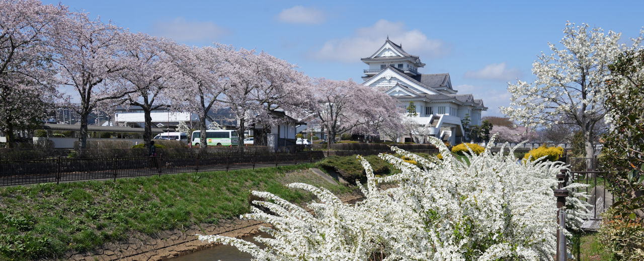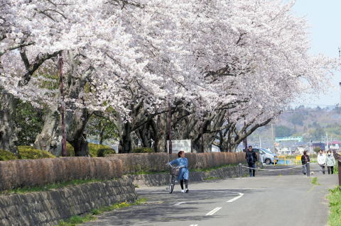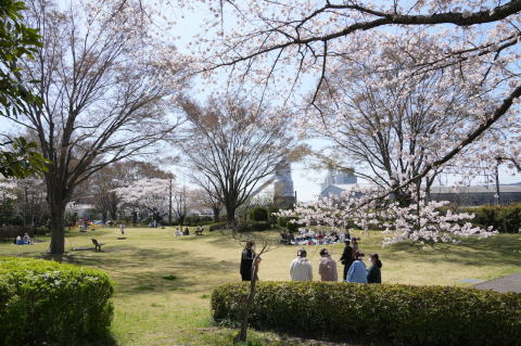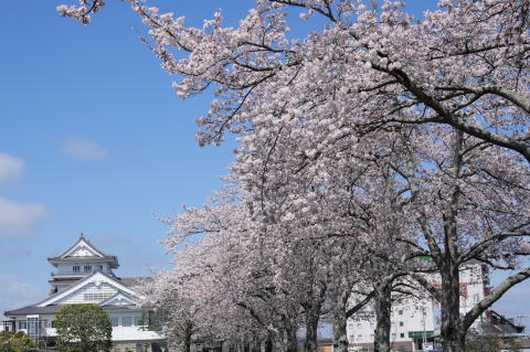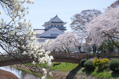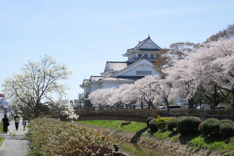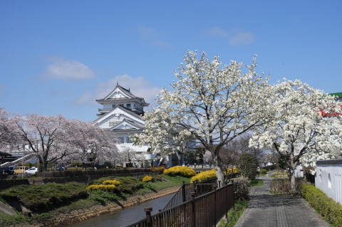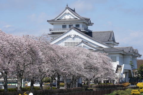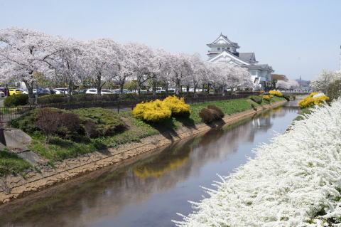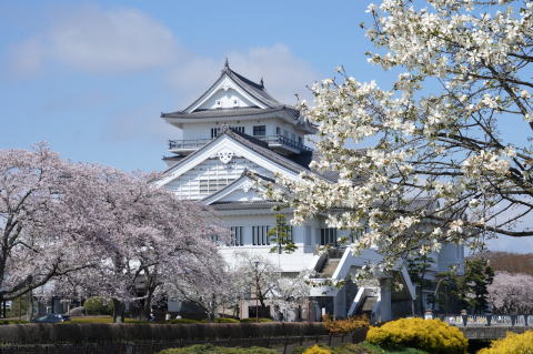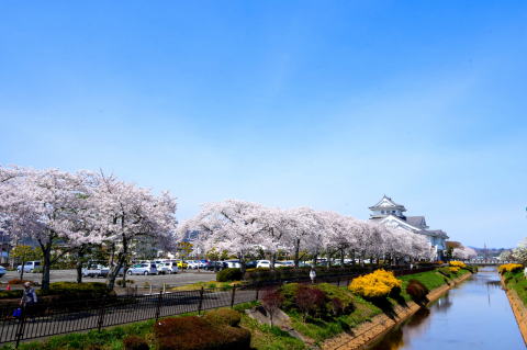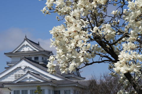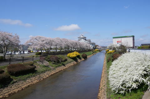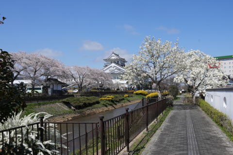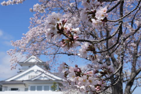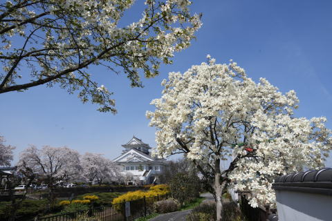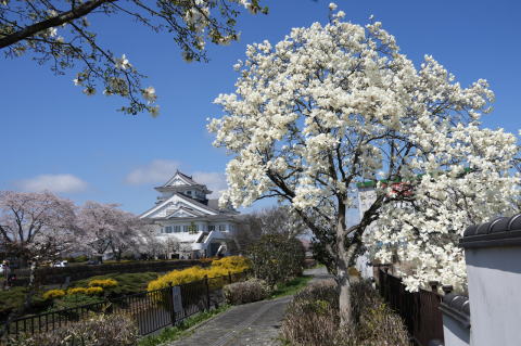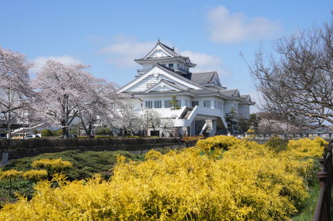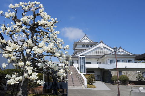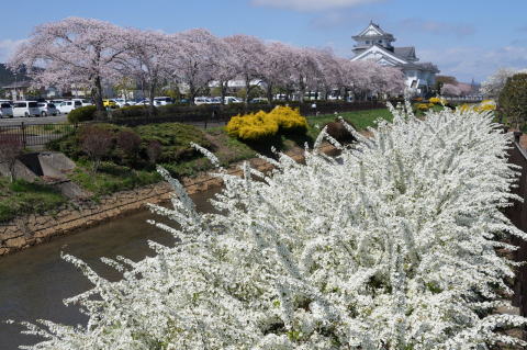 悠里館(亘理町郷土資料館・亘理町図書館)と満開の桜とその他の花